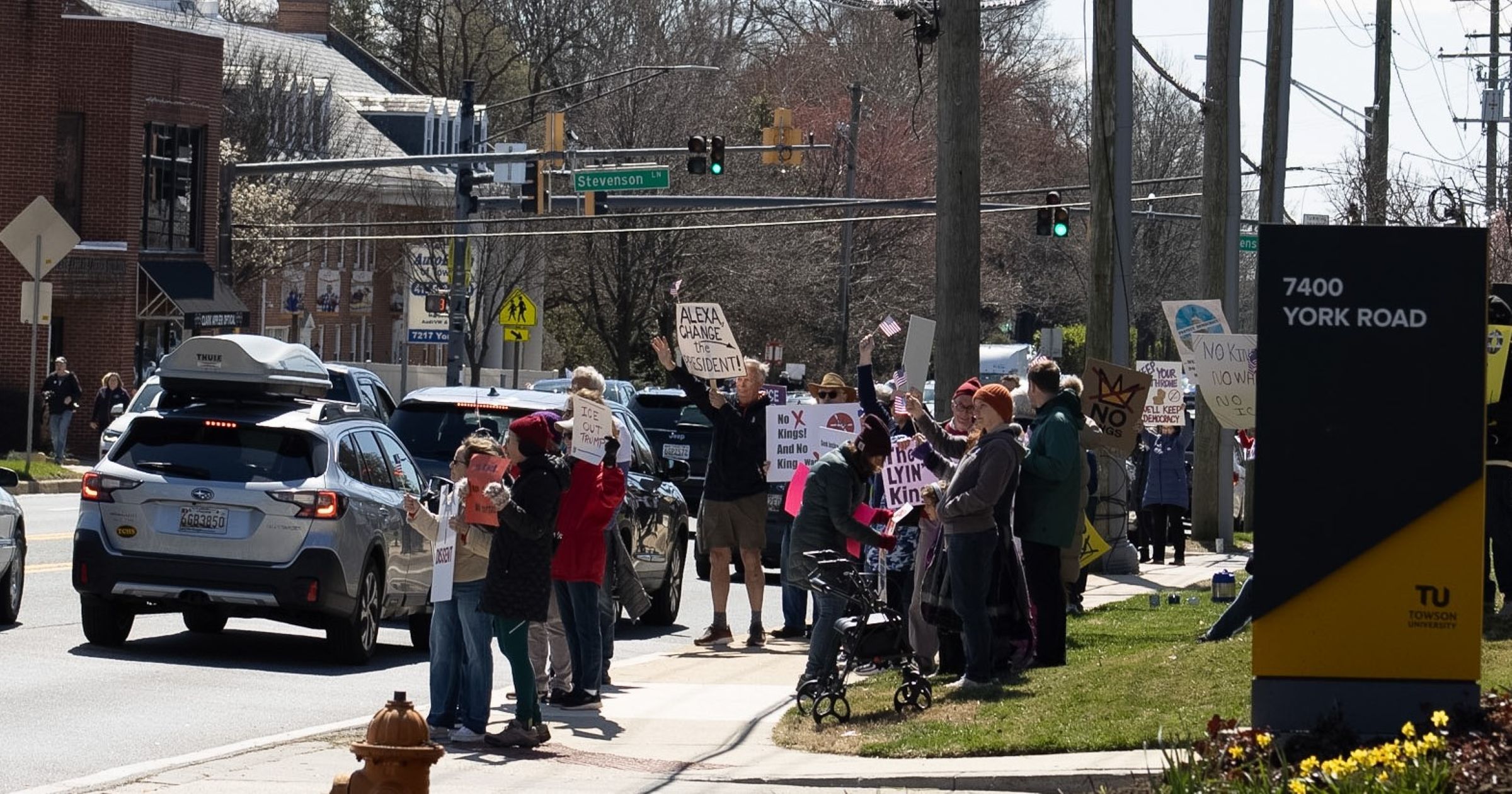 ‘No Kings’ sign-wave on Saturday packs York Road sidewalks