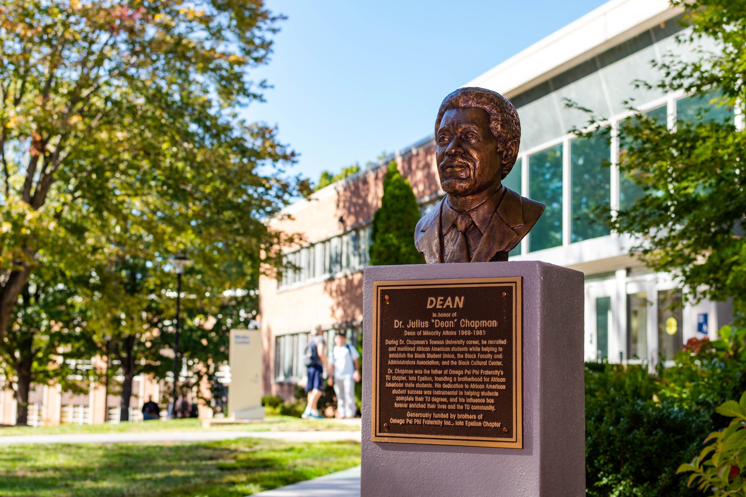 In 1973 the first Black Greek organization at Towson was established, the Rho Chapter of Iota Phi Theta Fraternity, Inc. Then-students Jerome Murphy, Robert Robinson, Craig Gray, Chuck Myer and Francis Clay helped found the chapter. The fraternity was initially founded in 1963 at Morgan State College. Its legacy of scholarship, citizenship and brotherhood continues through philanthropic efforts. A monument to all nine of Towson’s historically Black Greek organizations is displayed near Chapman Quad.