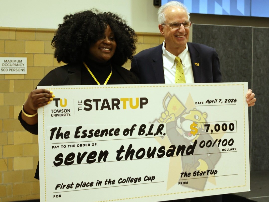 Towson University held its fifth annual College Cup on Tuesday at the StartUp at the Armory. During the entrepreneurial competition, Bria Reeves won first place, taking home a prize of $7,000 for her business.