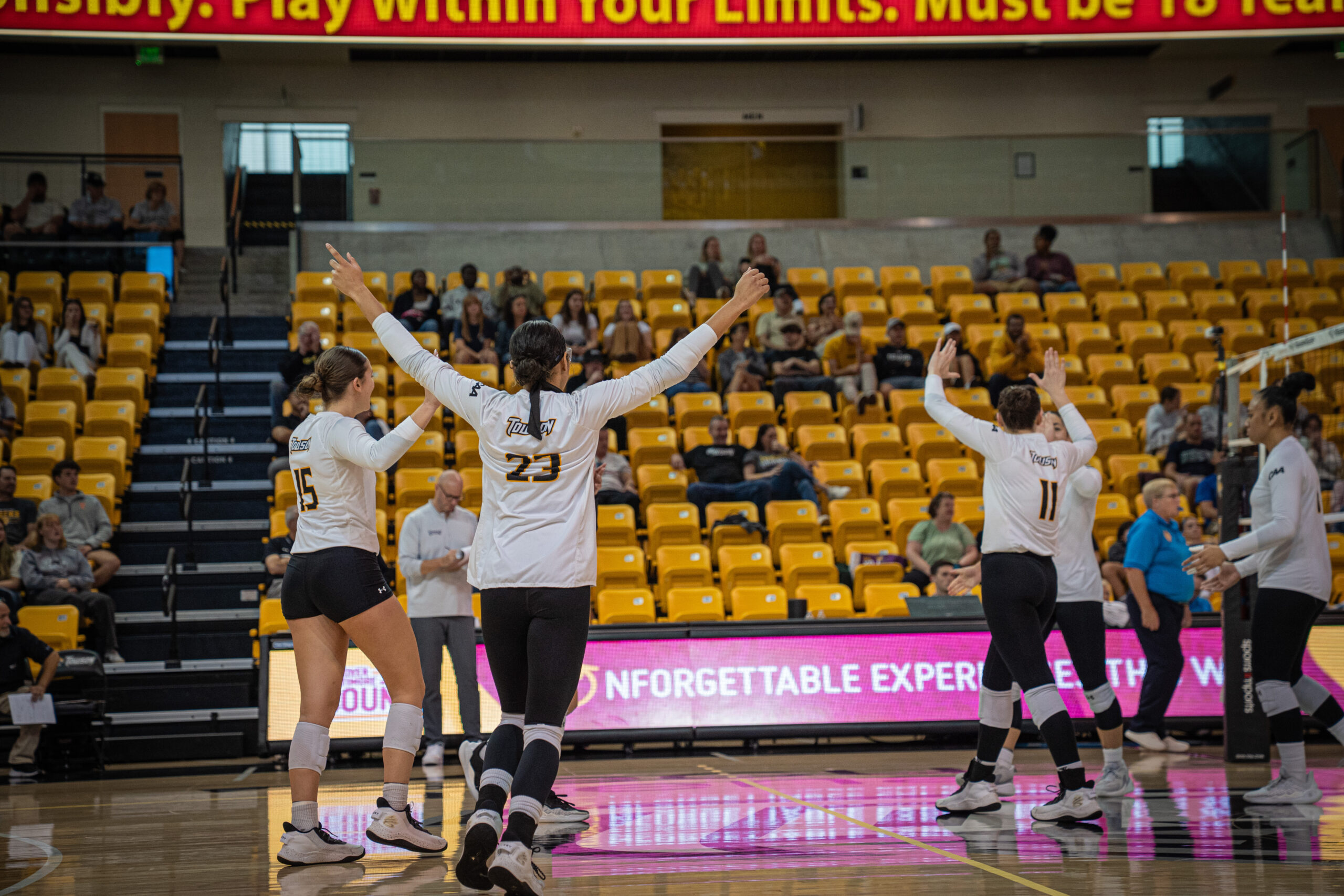 Towson broke free from the exchange and took off with the lead after multiple kills from across the lineup and an added service ace by Maisie Jesse.