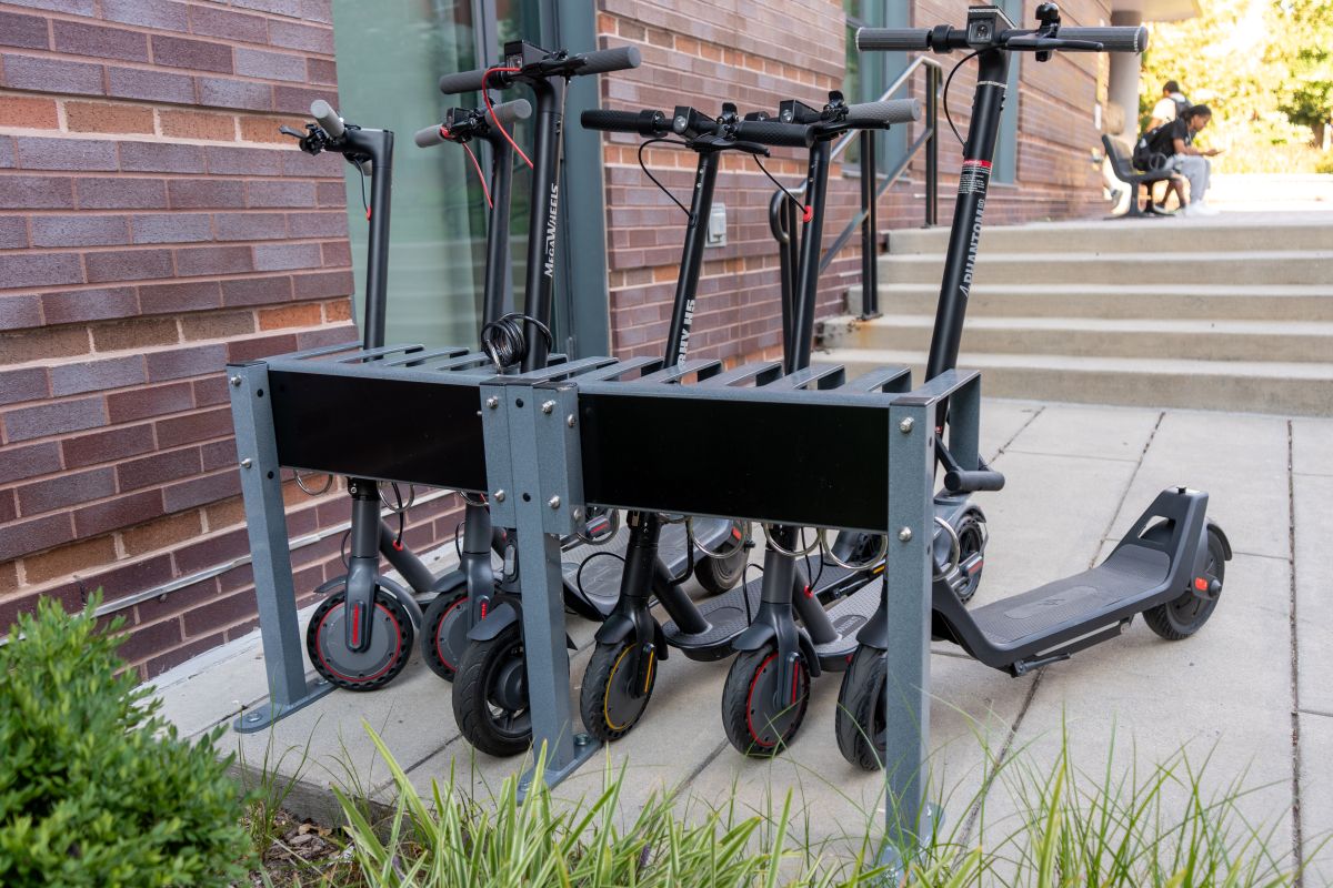 The e-scooter policy falls under the university’s Personal Mechanical Conveyance policy, known as PMC. It prohibits students from parking, riding and storing their e-scooters, e-bikes and other PMC devices in academic buildings, residence halls and any other campus facilities.