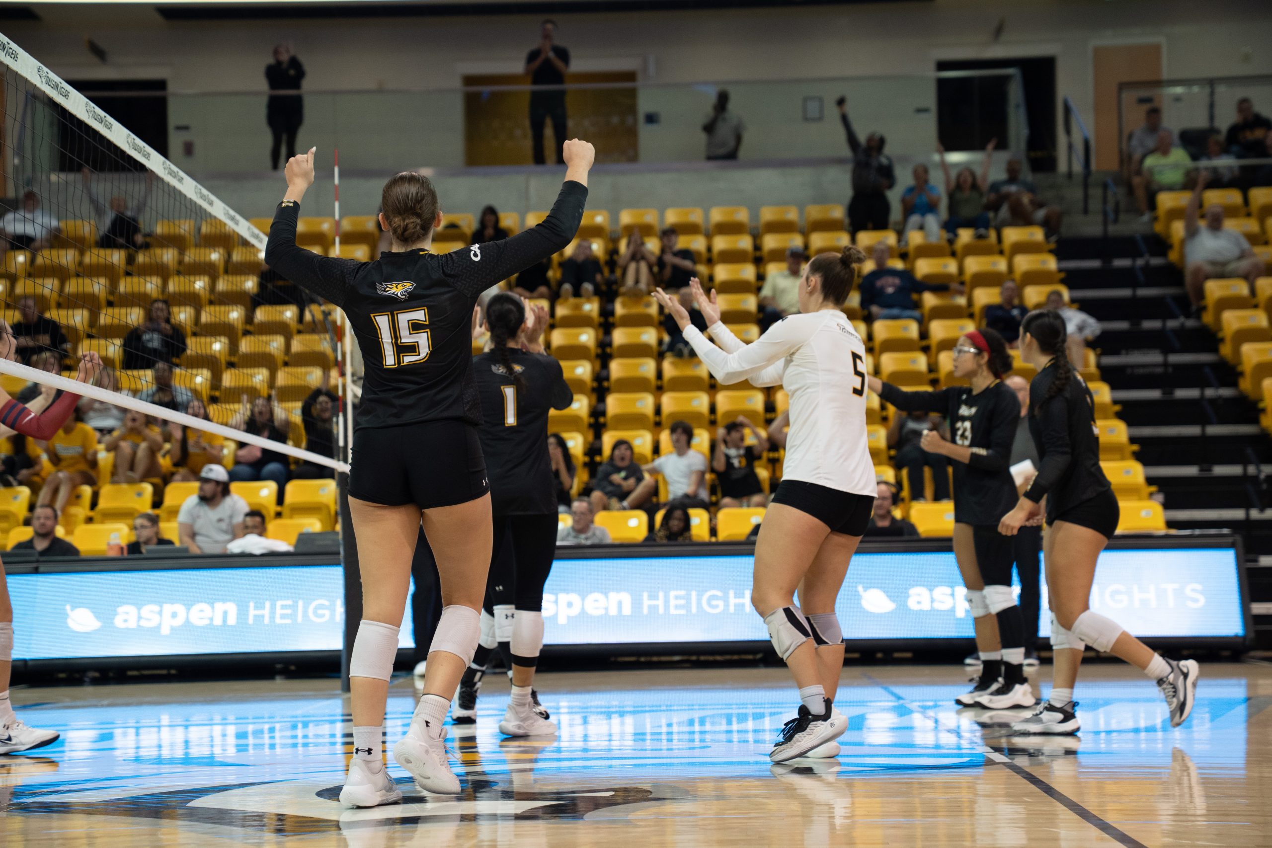 Looking to close the match after a flawed performance in set three, Sanders and Pickett started set four with kills, as the energy on the Towson side steadily increased.