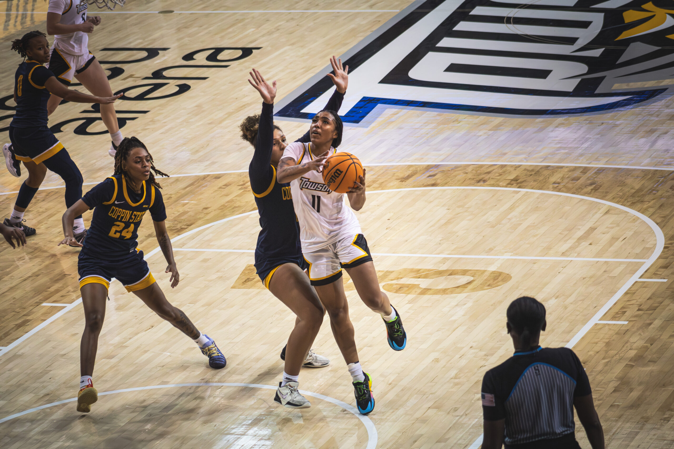 Following a loss against the No. 9 Maryland Terrapins, Towson returned home to face off against a Baltimore foe in the Coppin State Eagles. After a hard-fought paint battle that required the Tigers to rely on their perimeter scoring, Towson’s shooters proved clutch down the stretch, securing the 65-54 victory.